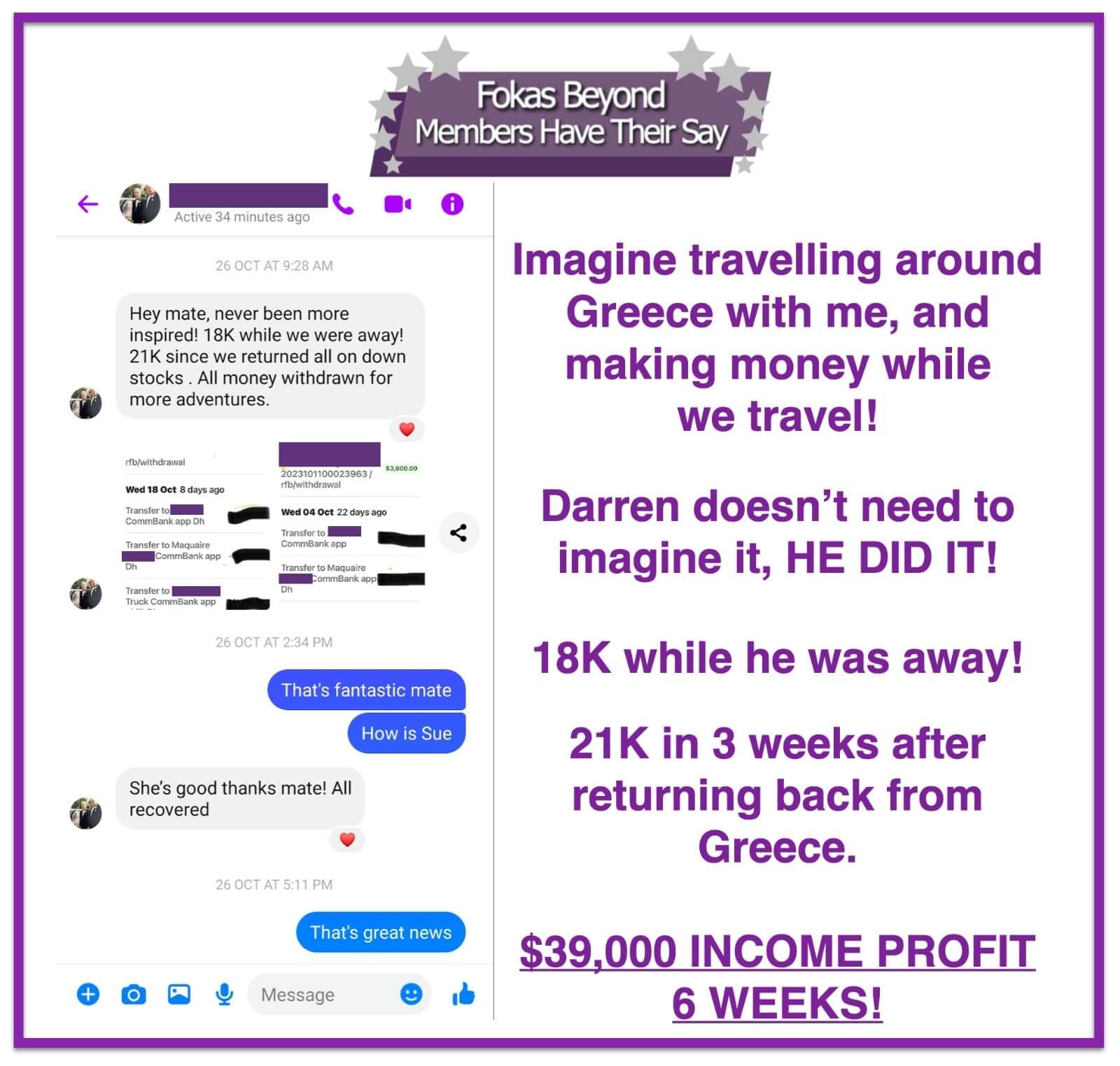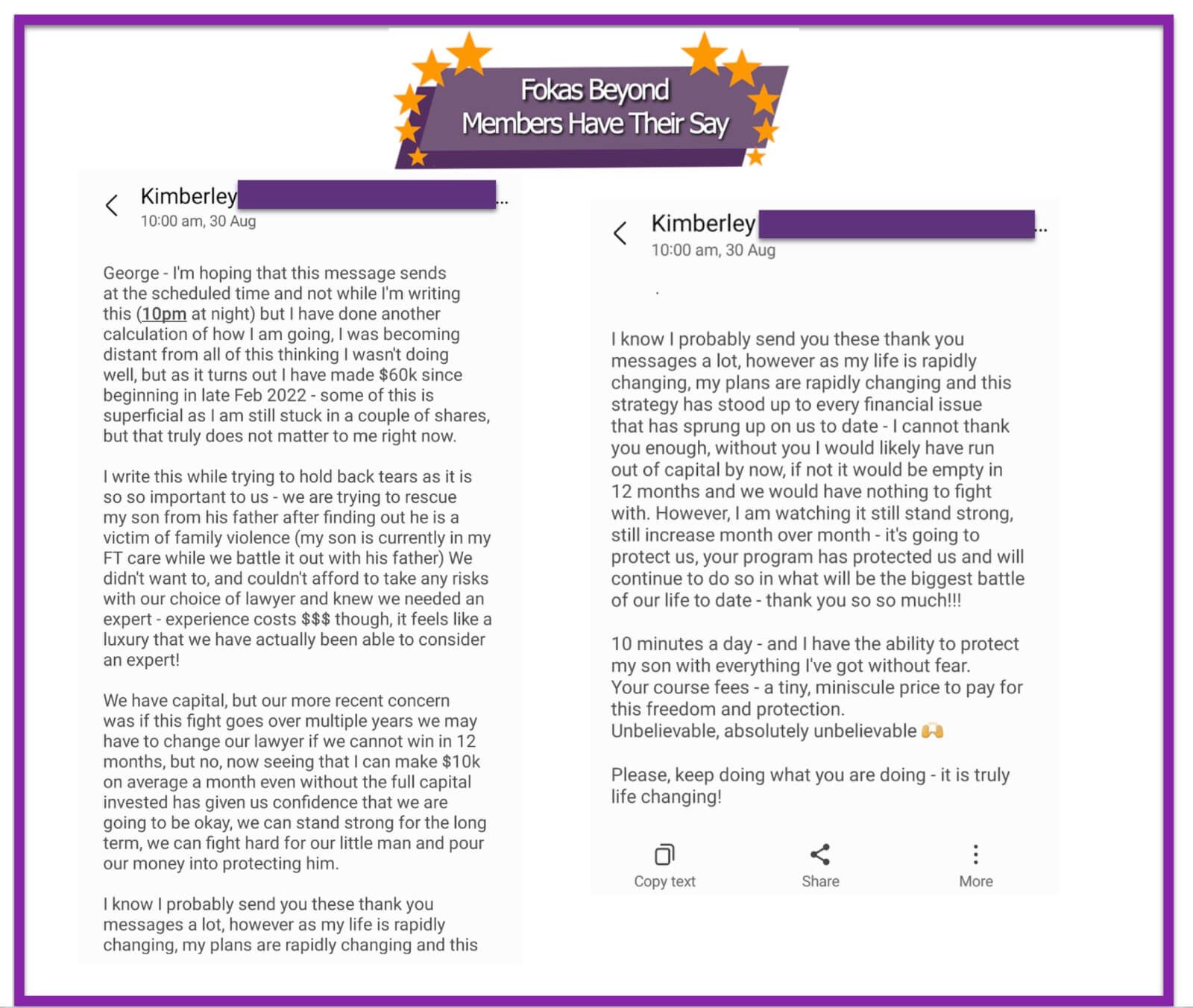 Fokas Beyond does not know who you are and your personal circumstances. We provide General Advice and then the decisions and results you achieve is up to you. Therefore we cannot guarantee what you will achieve. We are here to guide you and coach you through a process that thousands of our members around the world have followed and have seen results for themselves, moving you forward on this journey, together.